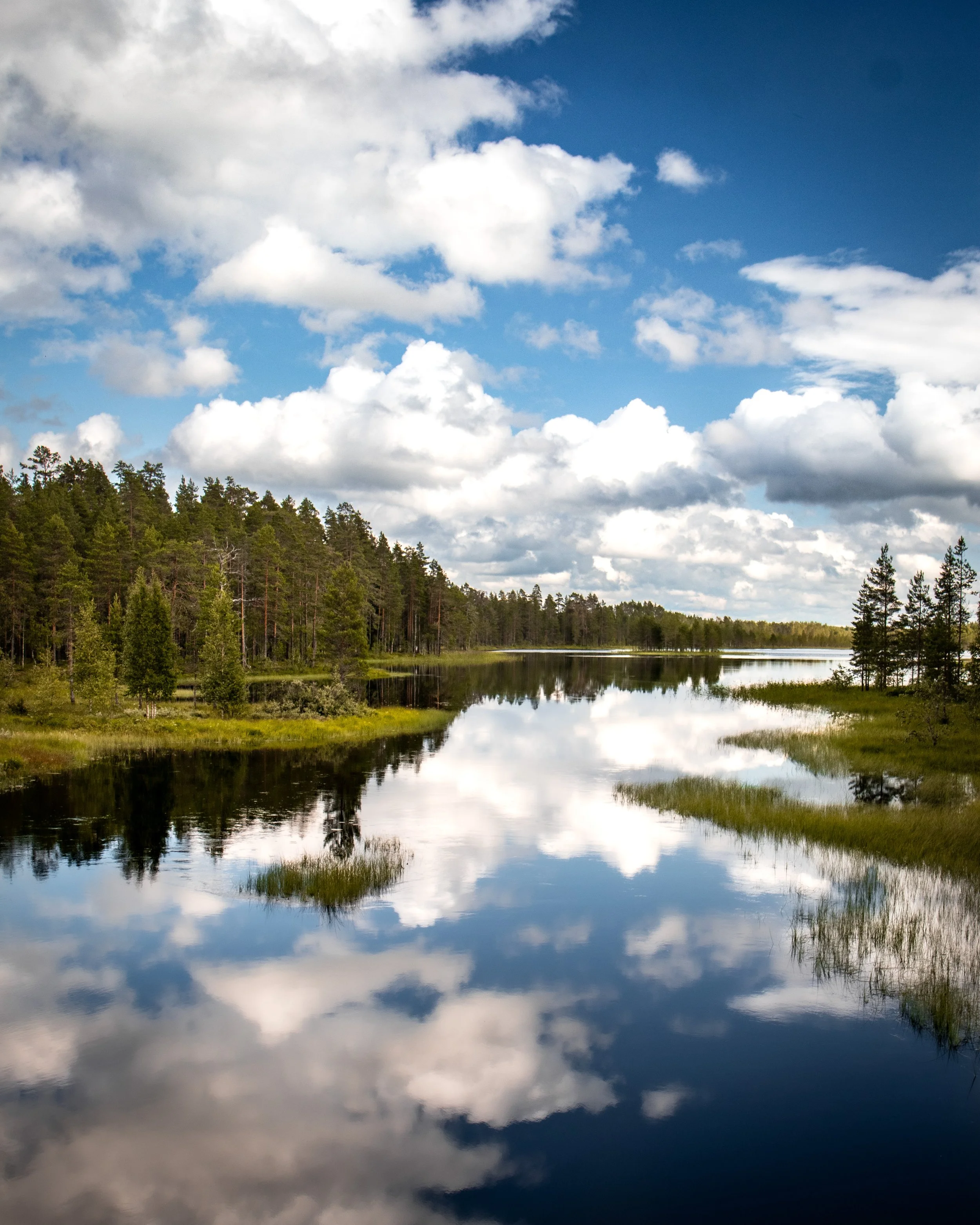 // It had been raining in this region for weeks and it was even raining in the morning, but the afternoon was looking better and the sun could even make an appearance. Yaas! We left the car at a big parking lot at Sammakkotammi (Valtimontie 1095, Rautavaara) and started our Uiton kierto (7 km) hike. This hike went around two lakes. I also got to enjoy my favorite landscape, the mires, and beautiful pine tree forests. This hike wasn’t that strenuous, but there are a lot of rocks and roots on the path.